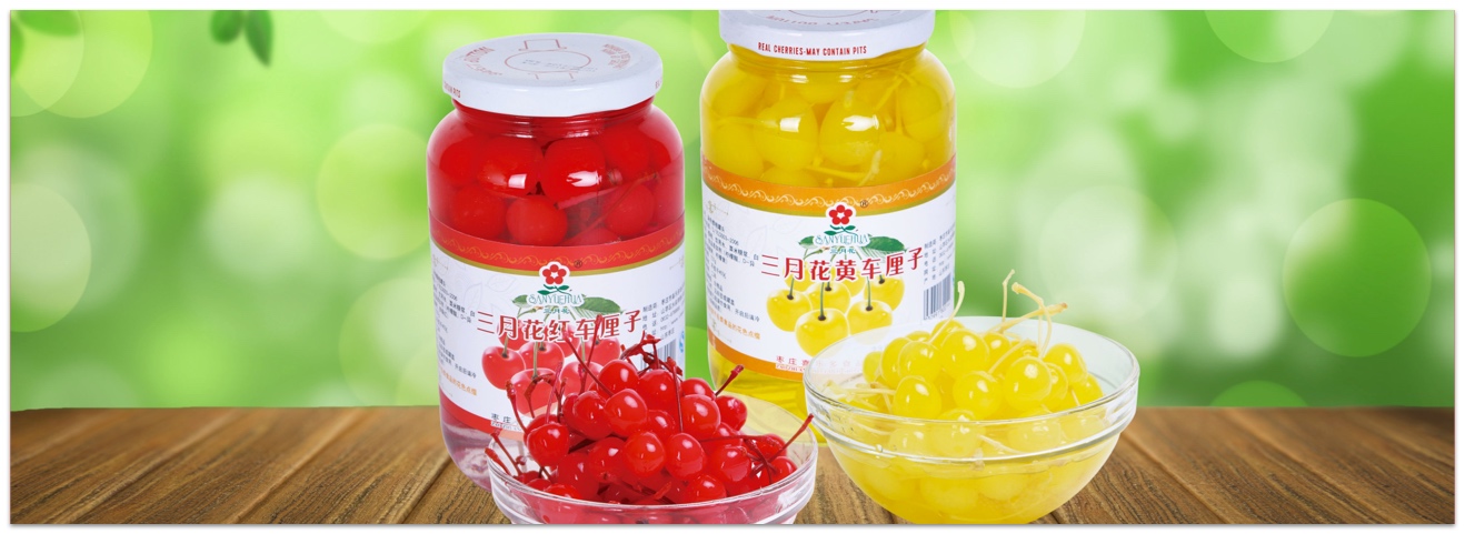 • 產(chǎn)品描述:本產(chǎn)品采用應(yīng)季新鮮的櫻桃精制而成,果肉晶瑩透亮、帶有自然的綠色,色澤均一、形狀飽滿,味道甜中帶酸,有輕微的冰涼感和濃濃的水果風味。